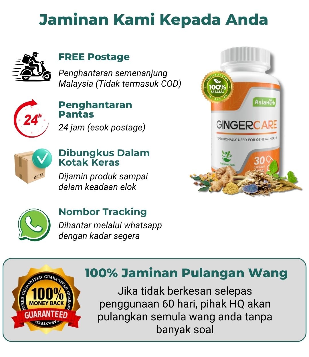 Insyallah, produk ini hanyalah sediaan herba-herba dan tumbuhan. Maka ianya selamat tanpa sebarang kesan sampingan.